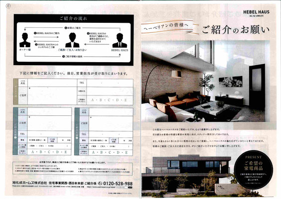 もし、ヘーベルハウスにご興味がございましたら、優秀な営業の方をご紹介出来ます。ご成約の場合、特典もございます。